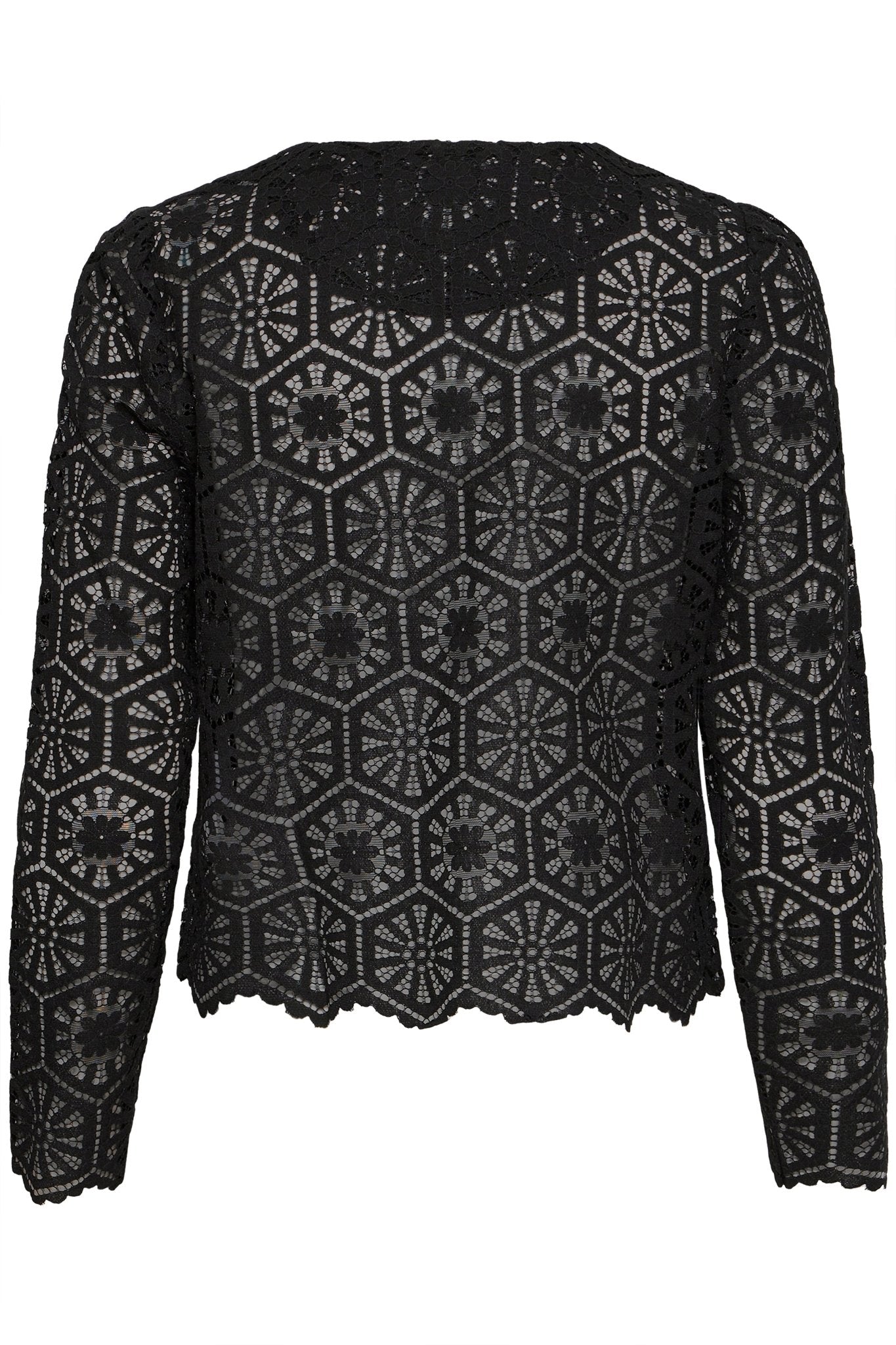 Schwarze Häkelbluse mit floraler Struktur für Herbst und Winter