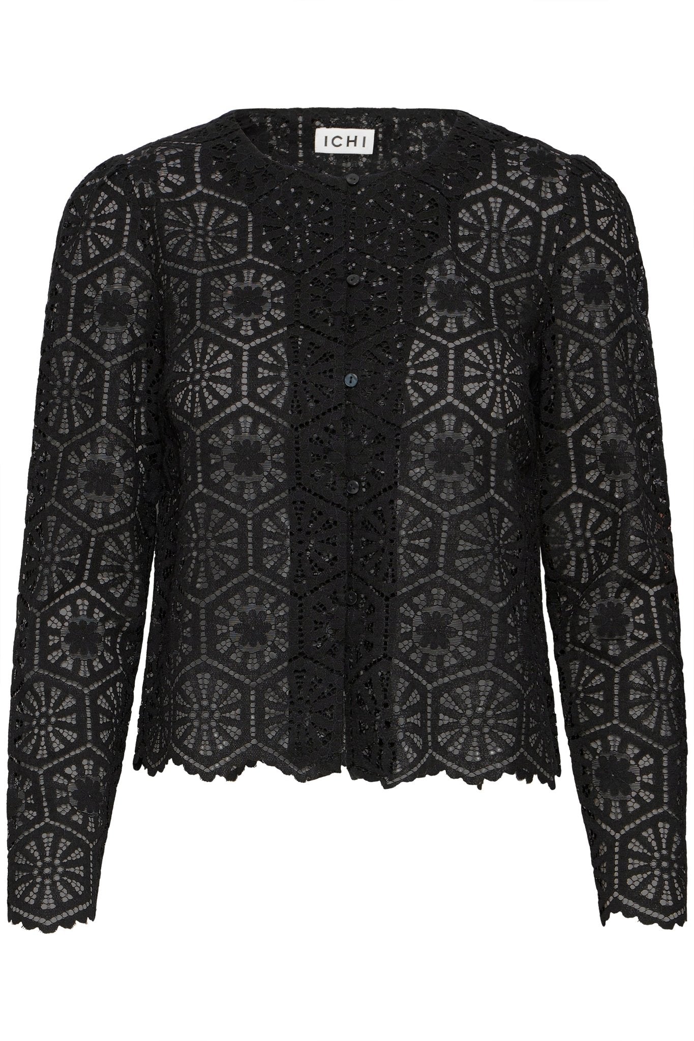 Diese Häkelbluse von ICHI verbindet feminine Raffinesse mit einer kunstvollen Textur. Das feine, florale Muster verleiht der Bluse eine zarte Transparenz, die elegant mit Licht und Schatten spielt. Der gerade Schnitt sorgt für eine moderne Silhouette, während die detailreich gearbeiteten Kanten für einen Hauch Romantik sorgen. Material: 45 % Baumwolle, 35 % Nylon, 20 % Viskose.