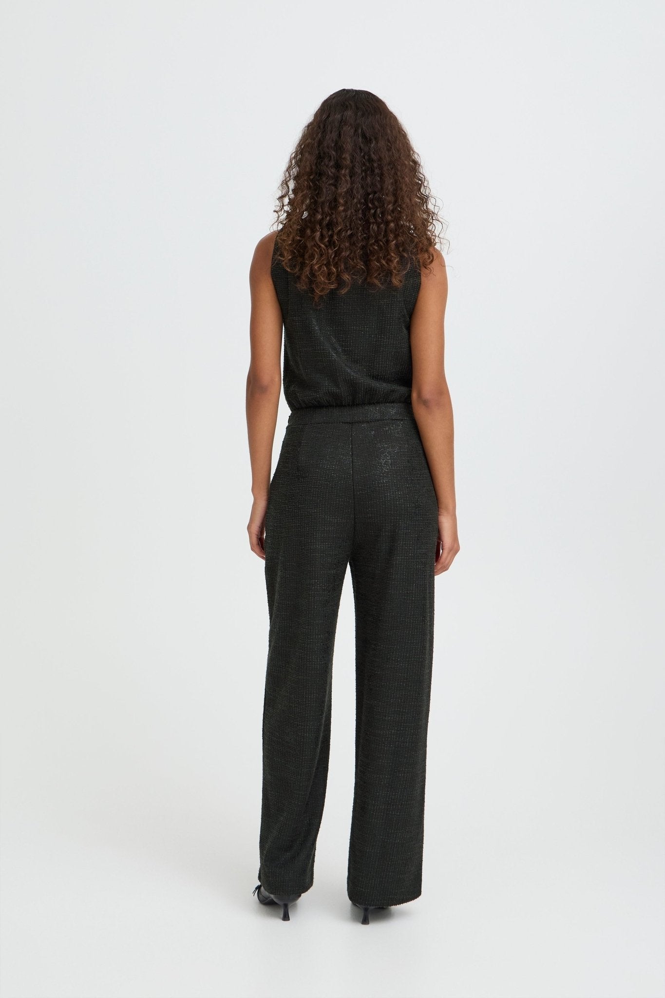 Dieser elegante Jumpsuit von ICHI vereint Schlichtheit und Raffinesse in einem modernen Design. Der fein schimmernde Stoff fängt das Licht sanft ein und unterstreicht die fließende Silhouette. Mit seiner klaren Linienführung, dem weiten Bein und der betonten Taille wirkt er gleichzeitig lässig und feminin – ideal für festliche Anlässe oder elegante Office-Looks. Material: 77 % Polyester, 22 % Viskose, 1 % Elasthan.