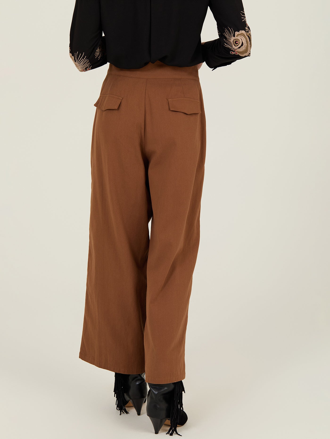 Auf einen Blick: Weite Passform • Cropped-Länge • Hohe Taille mit Ösendetail • Bindegürtel mit Muster • Saison Herbst/Winter