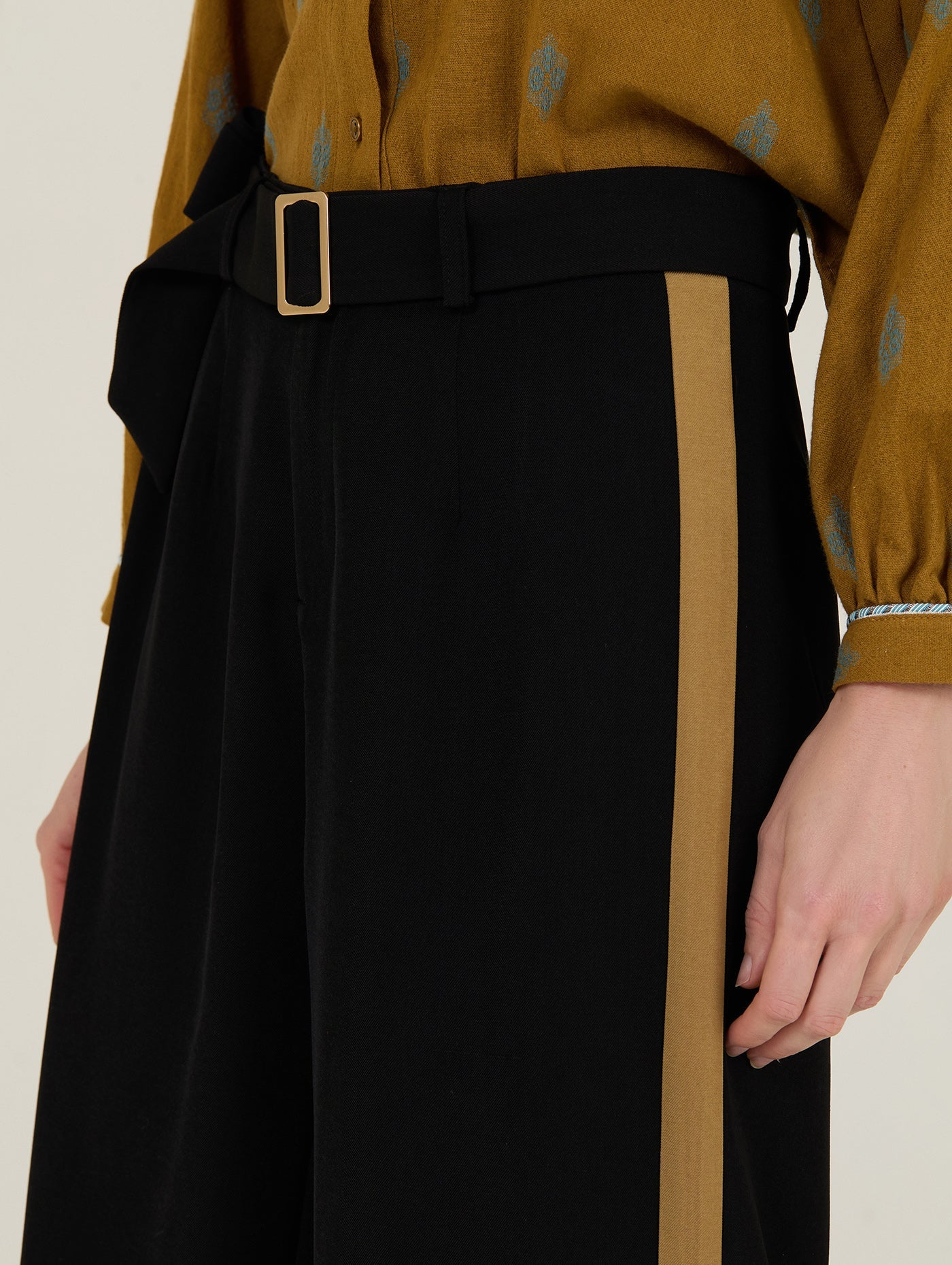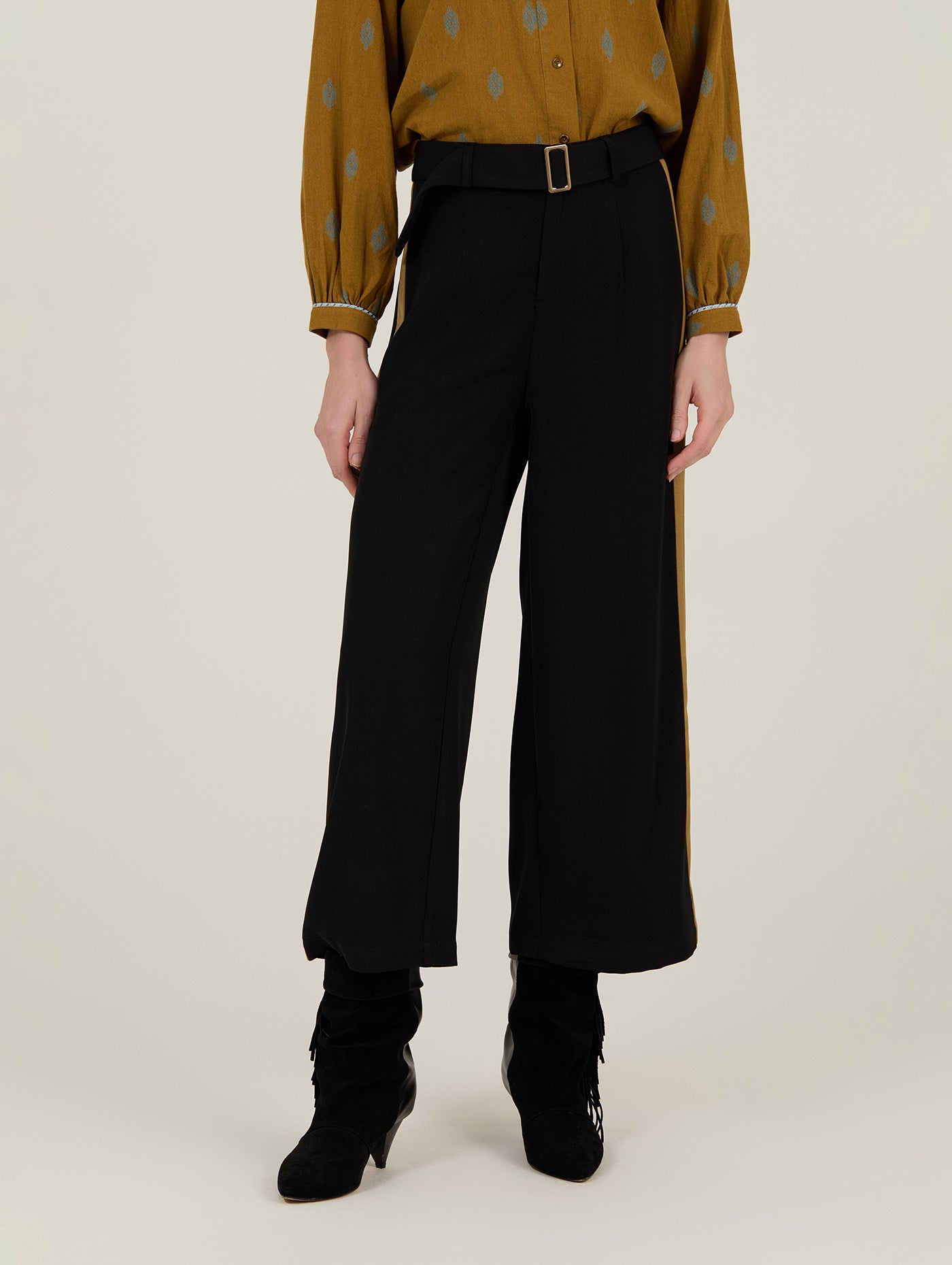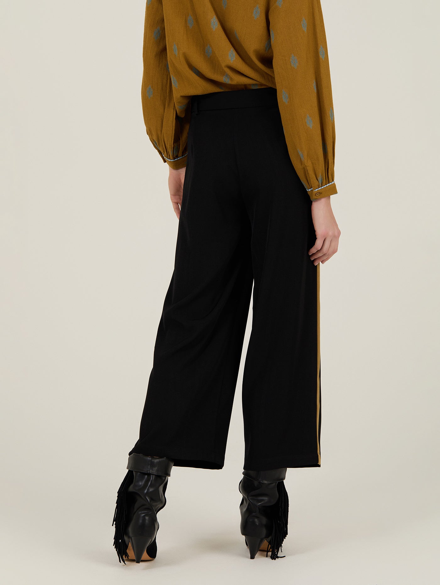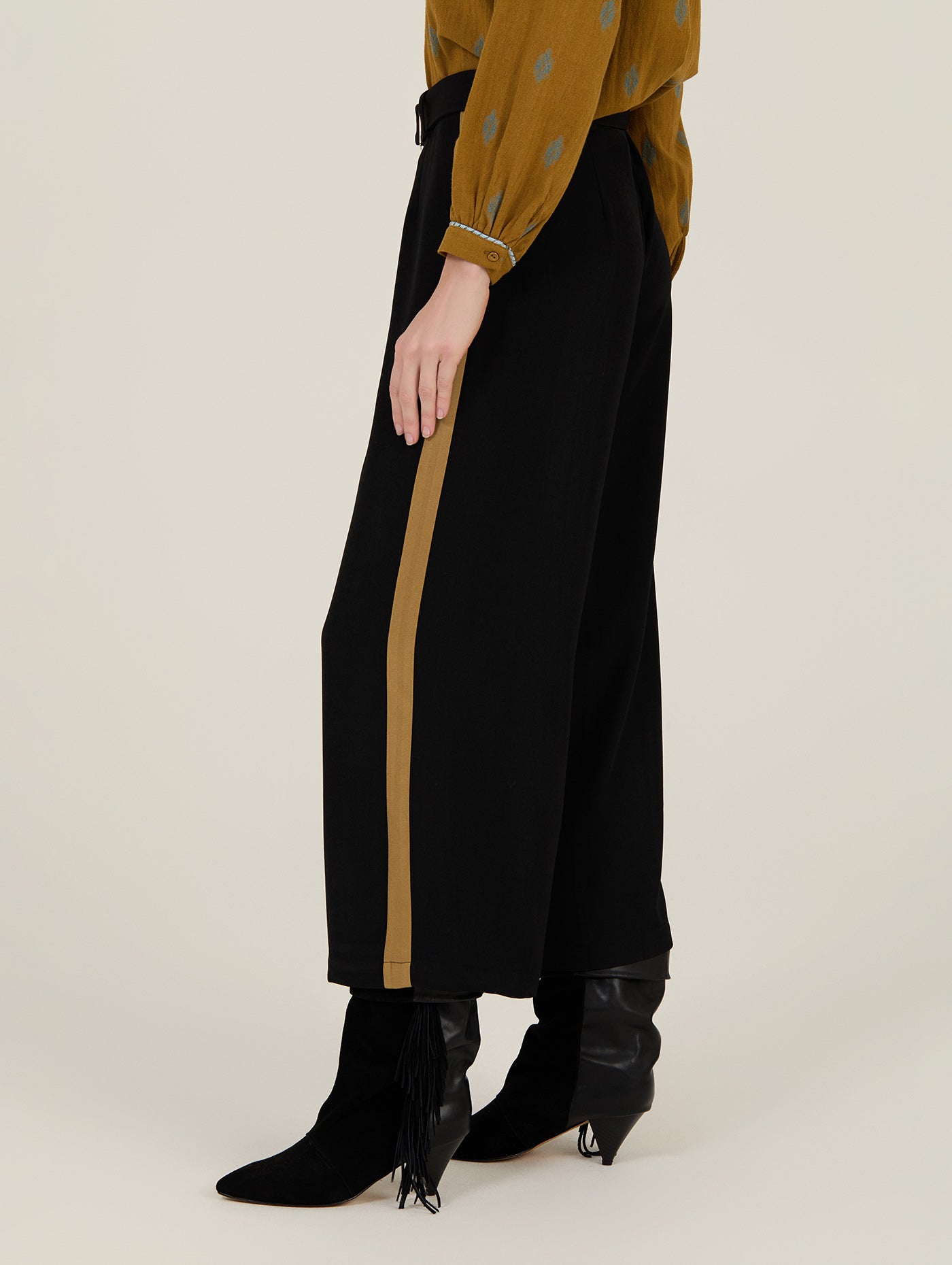 Auf einen Blick: Weite Passform • Cropped-Länge • Schwarzer Stoff mit Kontraststreifen • Mit Gürtel • Saison Herbst/Winter